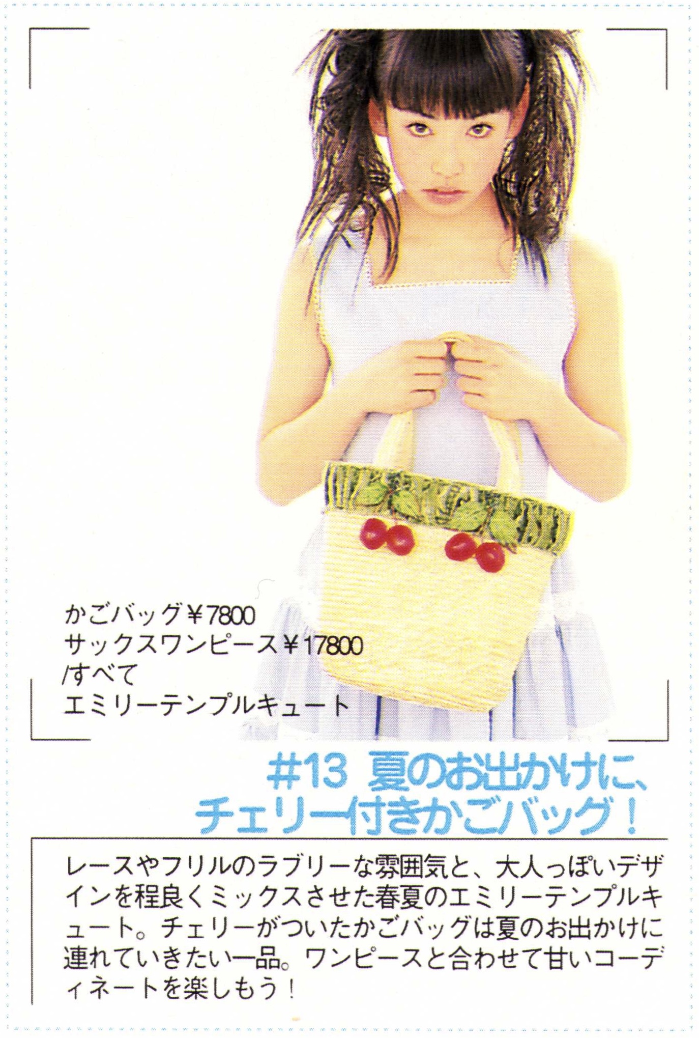 Translated description: "#13 Cherry basket bag for summer outings! Emily Temple Cute's Spring/Summer collection is a perfect mix of the lovely atmosphere of lace and frills and a mature design. The cherry-decorated basket bag is a must-have for summer outings. Pair it with a dress for a sweet look!".