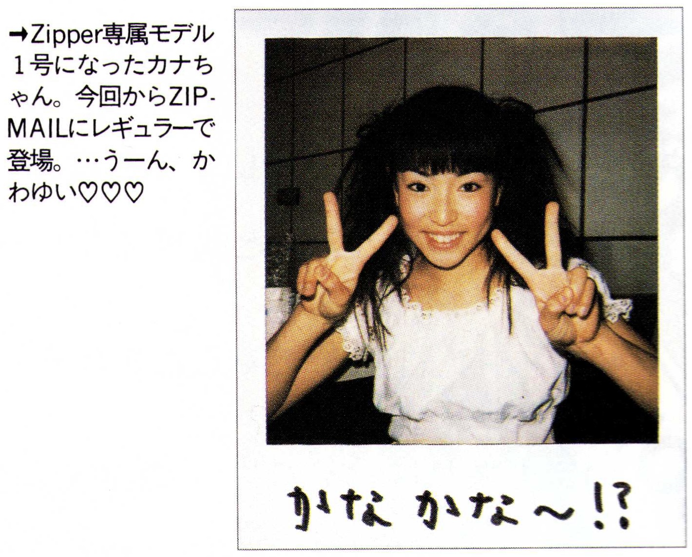 This is not confirmed to be ETC but it's from the same photoshoot with the same model as the second photo on this page. Translated description: "→ Kana-chan became Zipper's first exclusive model. She will be appearing regularly in ZIP-MAIL from now on. ...Hmm, she's so cute♡♡♡♡♡". The photo has "Kanakana~!?" written on it. I believe the model's name is Kana Ishikawa.